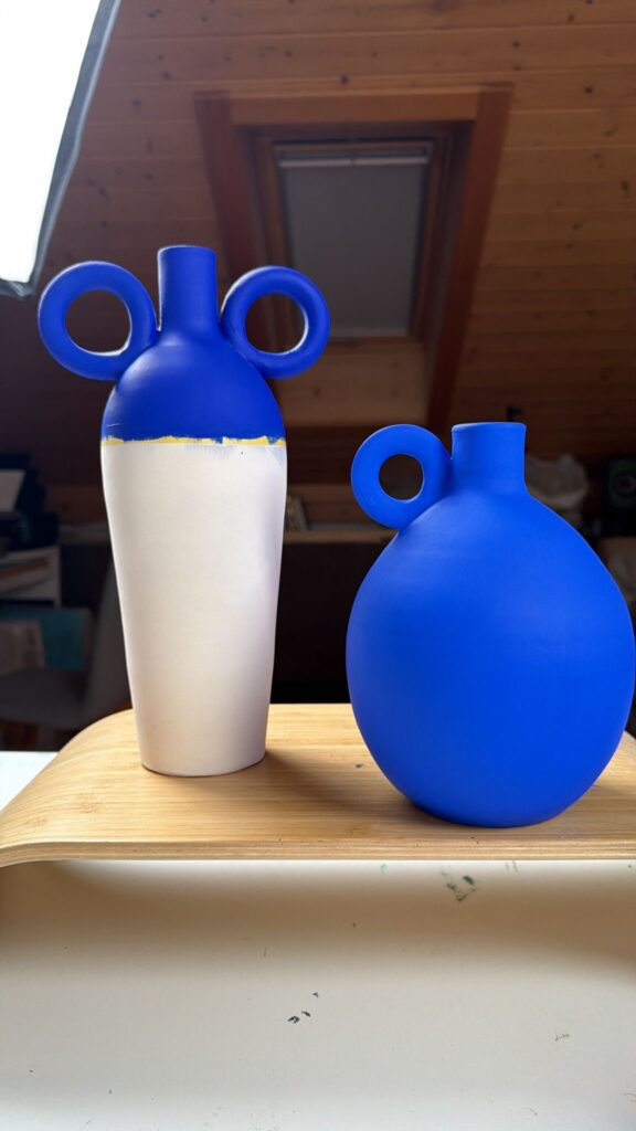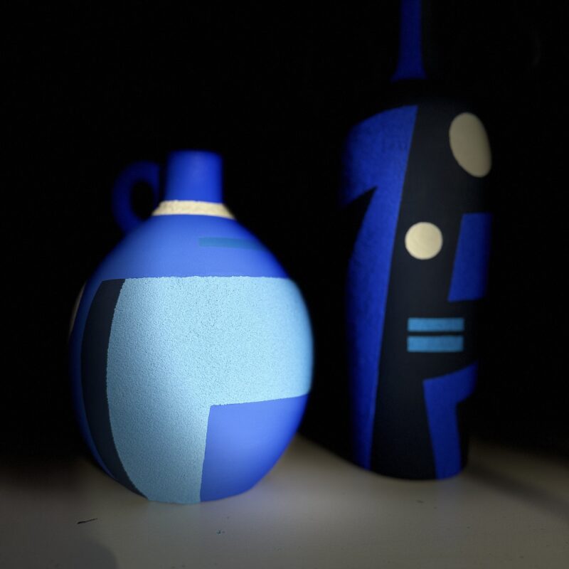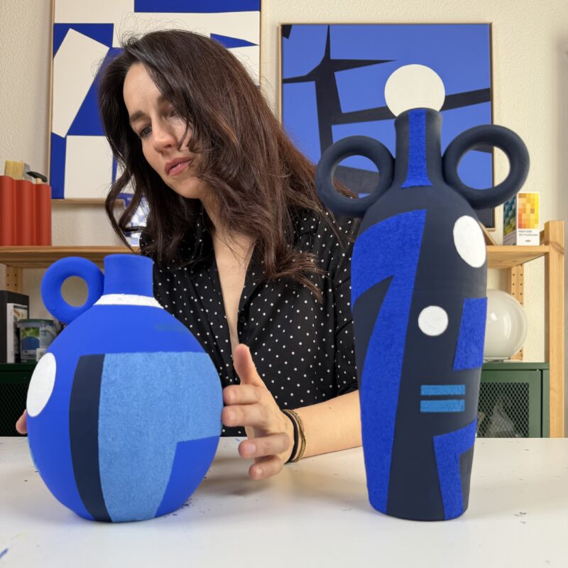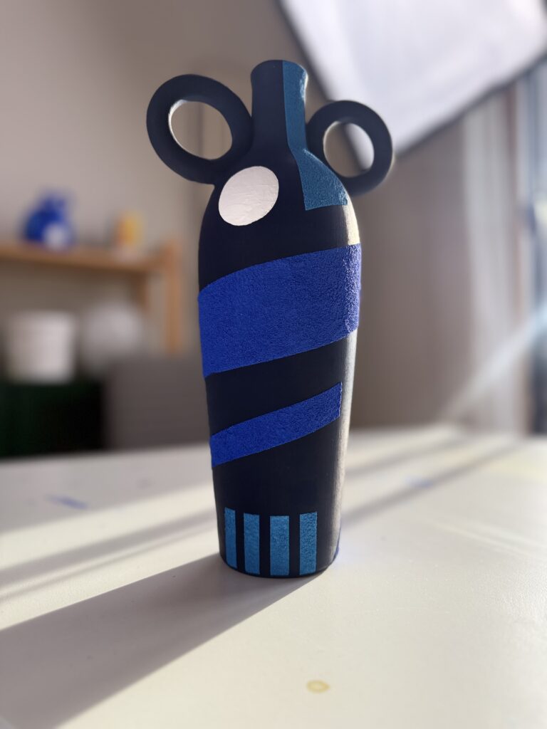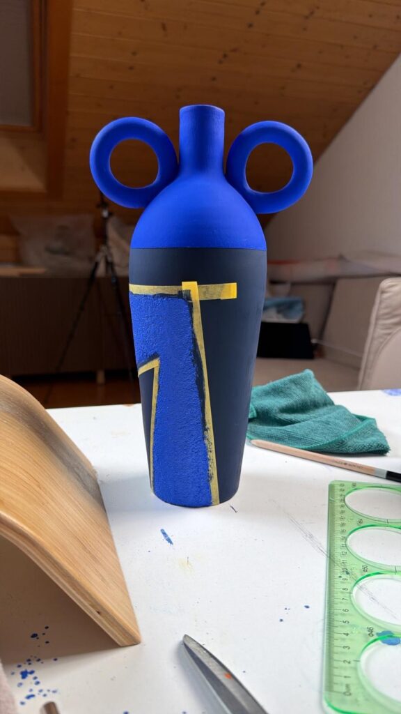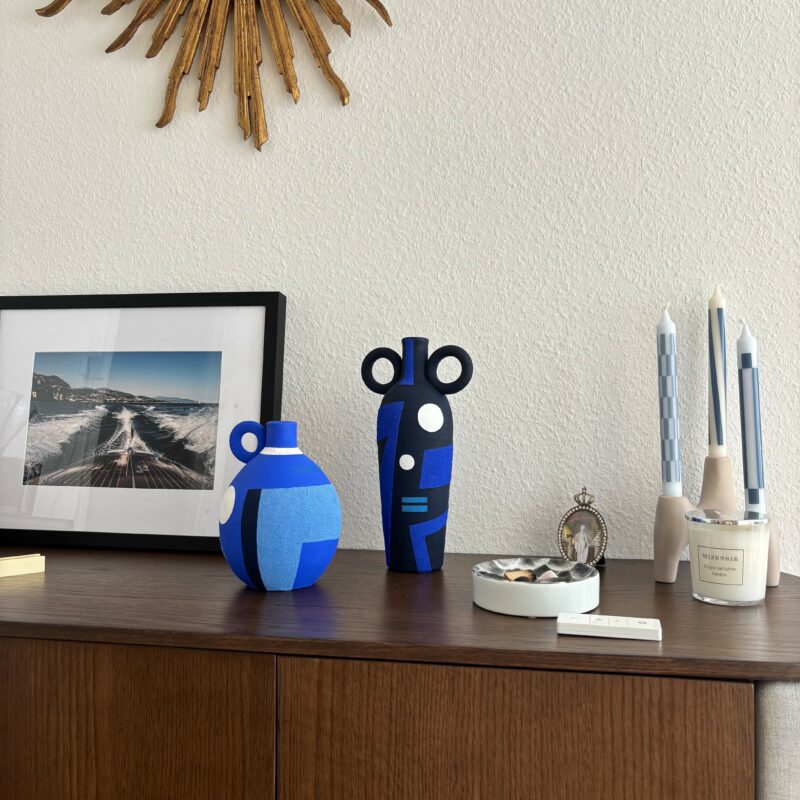 Handmade ceramic vase, hand-painted in acrylic with sand and finished with marble powder and a matte varnish.