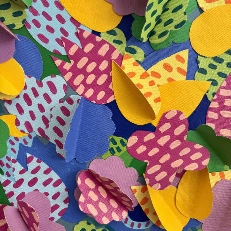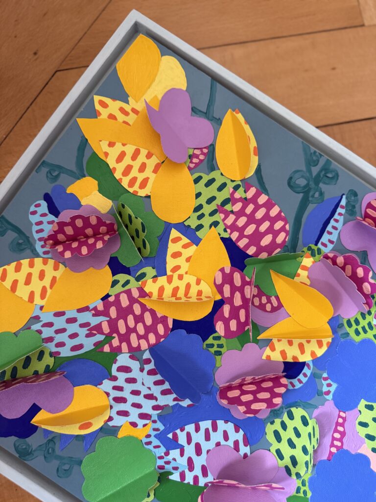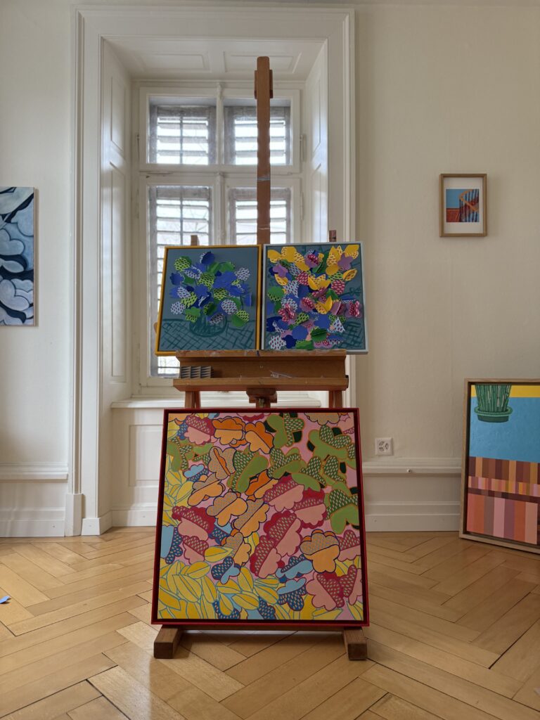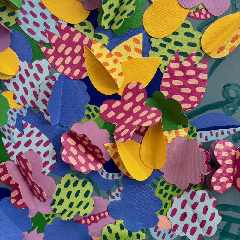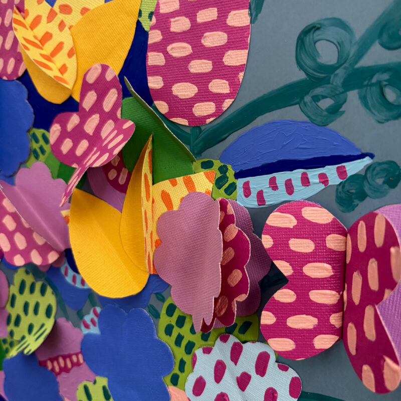 “Flowers Table II” extends a warm invitation: linger for a while, step into this enchanted space and let yourself be carried by its vibrant, comforting energy. And when it is time to leave, the work reminds us that a happy place always exists : a realm untouched by hardship, a garden to which we may always return.