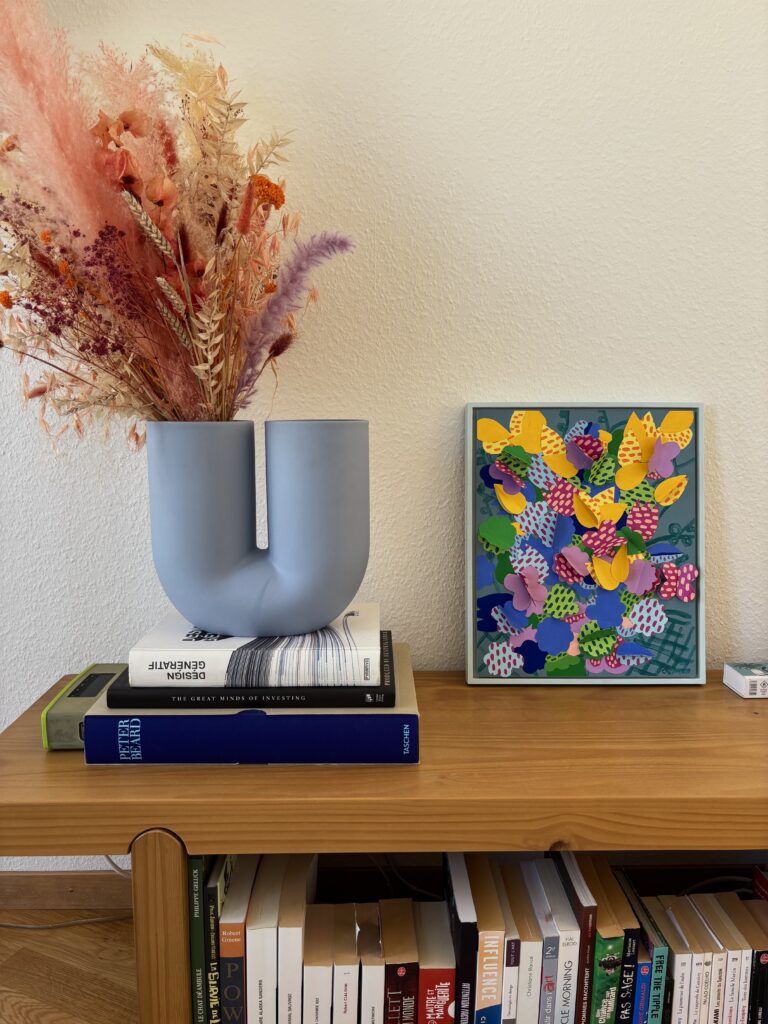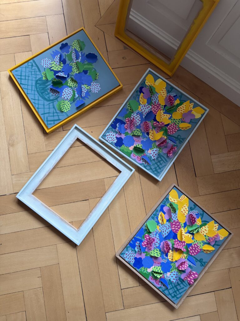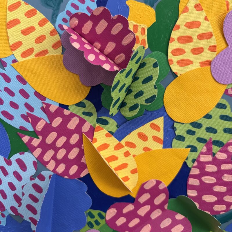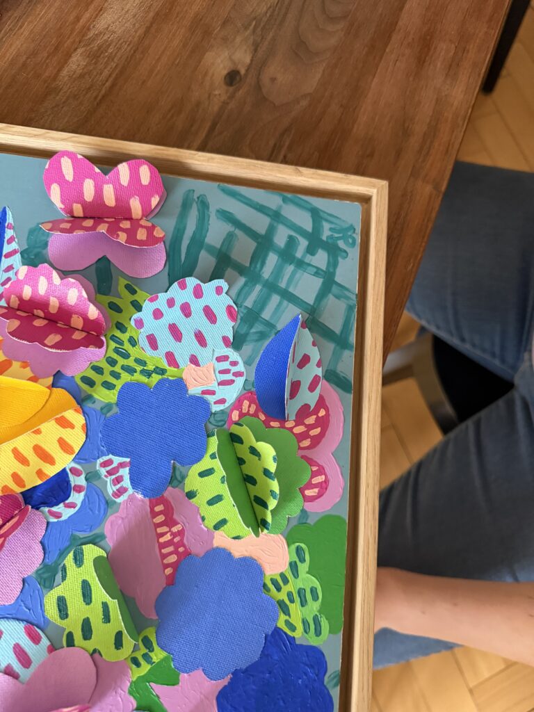 “Flowers Table II” invites the viewer into the artist’s imagined garden : a place of vivid color and quiet enchantment, where moments of nature unfold like gentle magic. Though the artist does not have a garden of their own, this work captures the essence of a sanctuary where one always feels safe, a refuge to return to after a difficult day, embraced by the beauty of the natural world.